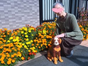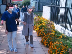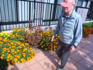 まだまだ元気に咲くマリーゴールドに見守られながら、澄んだ秋の空の下をゆっくりと歩きました。