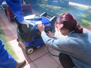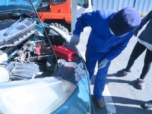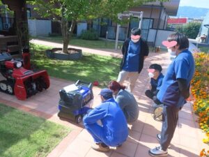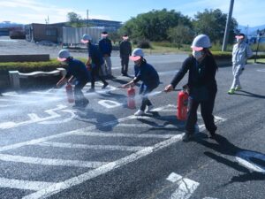 避難訓練後は、水消火器を使った模擬消火体験や、自家発電機・車からの電源確保方法の確認も行い、万が一に備える大切さを改めて実感しました。