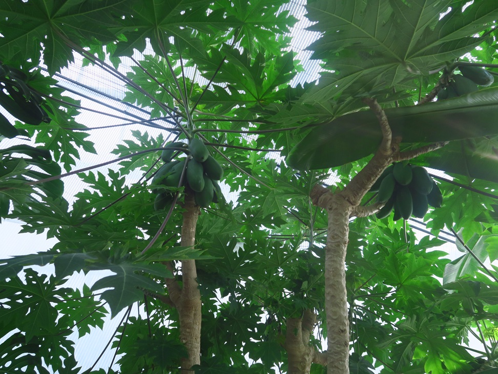 温室ではバナナ、パパイヤ、パイナップルなど南国の果実を眺めて癒され、 メダカたちにエサをあげてほっこり🐟✨