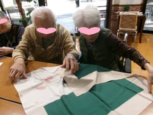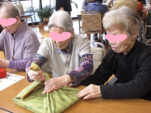 慣れた手つきで綺麗に結ぶ入居者様もいらっしゃました! 風呂敷の魅力を再発見できたひとときでした✨