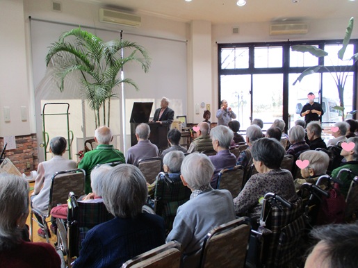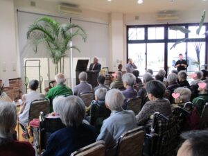 柔らかなアナログの音色がホールいっぱいに広がり、入居者様からは「懐かしいね」との声も。 ご夫婦の軽快なトークも加わり、笑顔あふれるひとときとなりました。