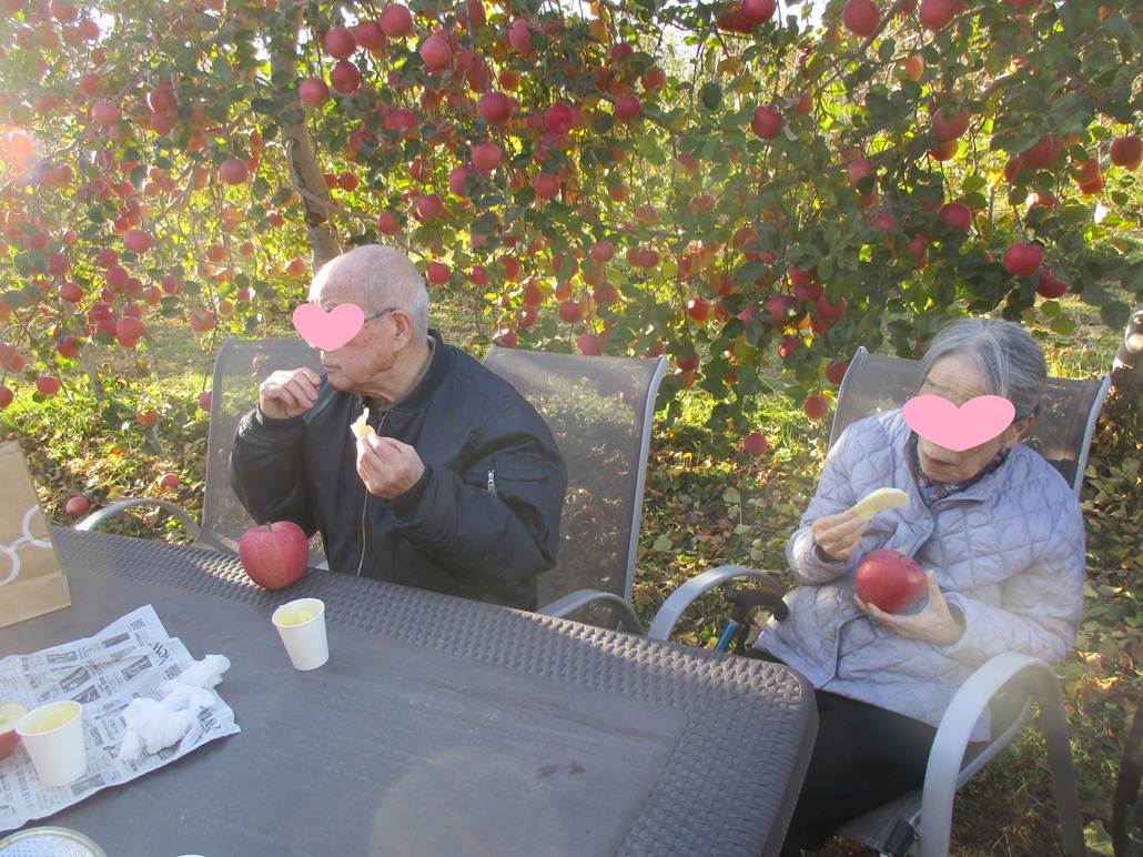 まだ参加されていない入居者様と一緒とりんご畑へお出掛けしてきました!
