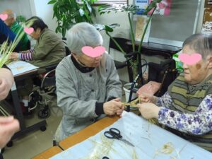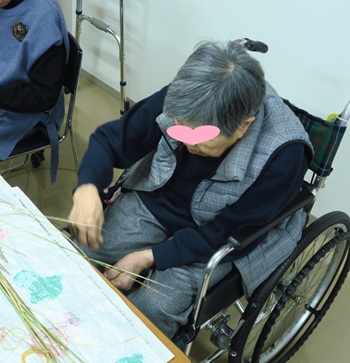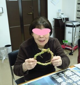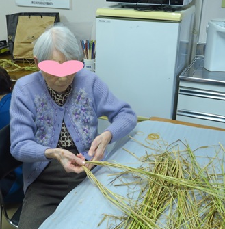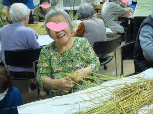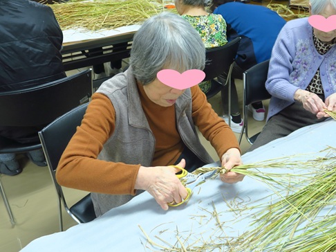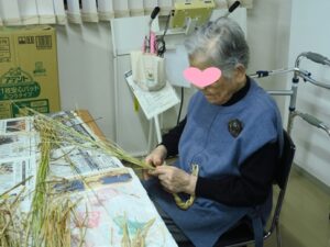 今日は入居者様と一緒に、藁を使った輪飾り作りを行いました!