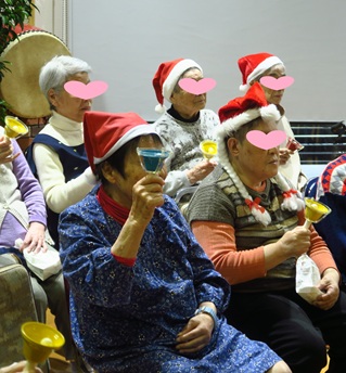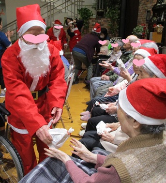 サンタさんからのプレゼントやハンドベル、クリスマスソングを通して、皆さまと一緒に心温まる時間を過ごしました。