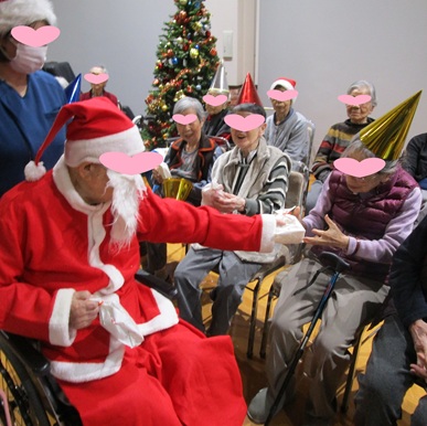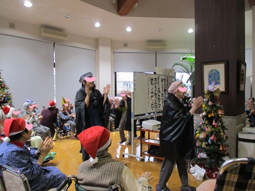 聖者に扮した入居者様の登場から、スタッフによる行進やダンス、クリスマスクイズ、ジェスチャーゲームまで盛りだくさん。