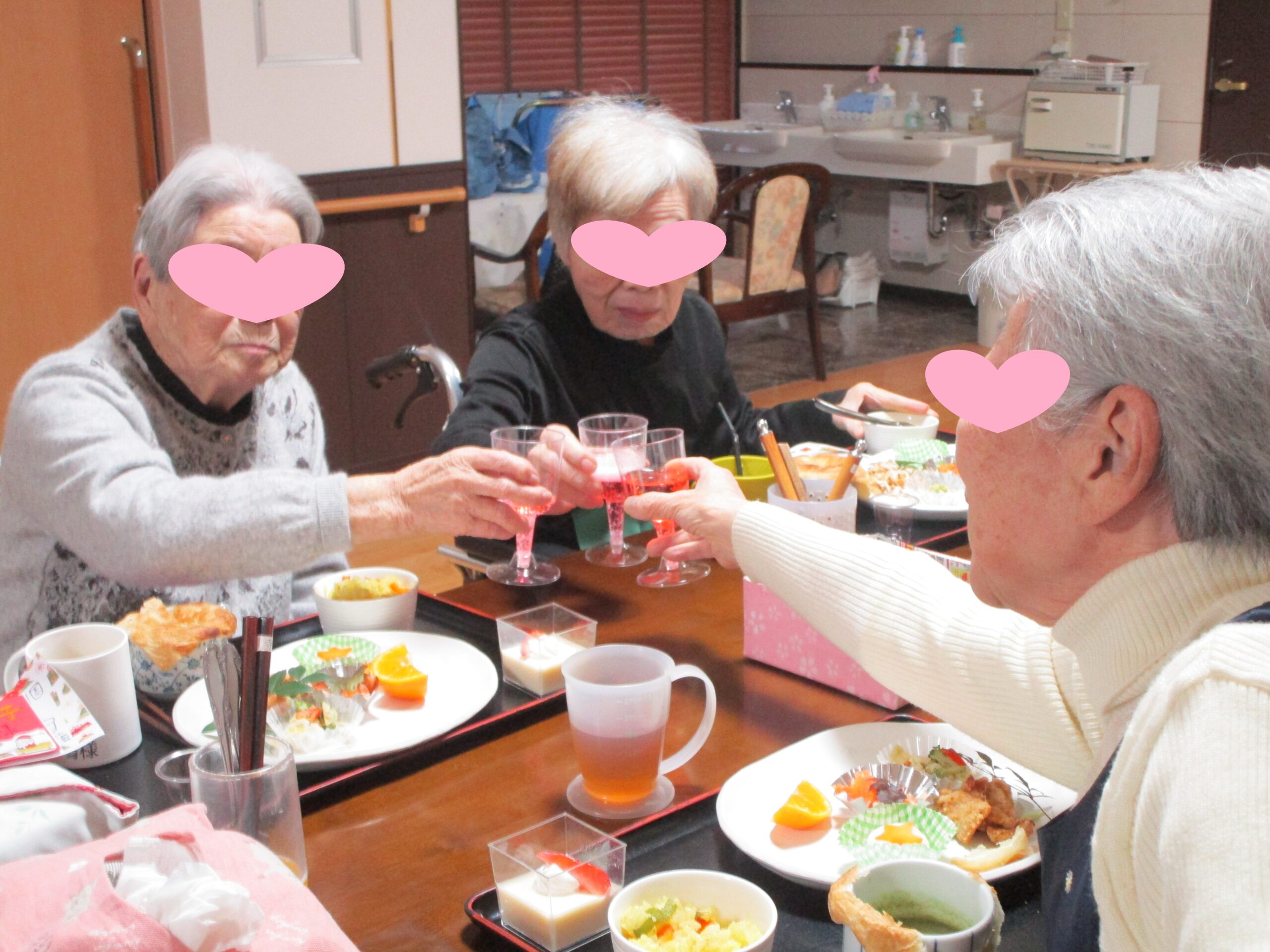 クリスマス会のあとは、シャンメリーで乾杯しながら特別ランチを楽しみました!
