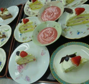 エールコート咲楽では、ホテルブエナビスタ様のクリスマスケーキをお取り寄せしました。 テーブルに並ぶ華やかなケーキに、皆さんの表情もぱっと明るくなります。