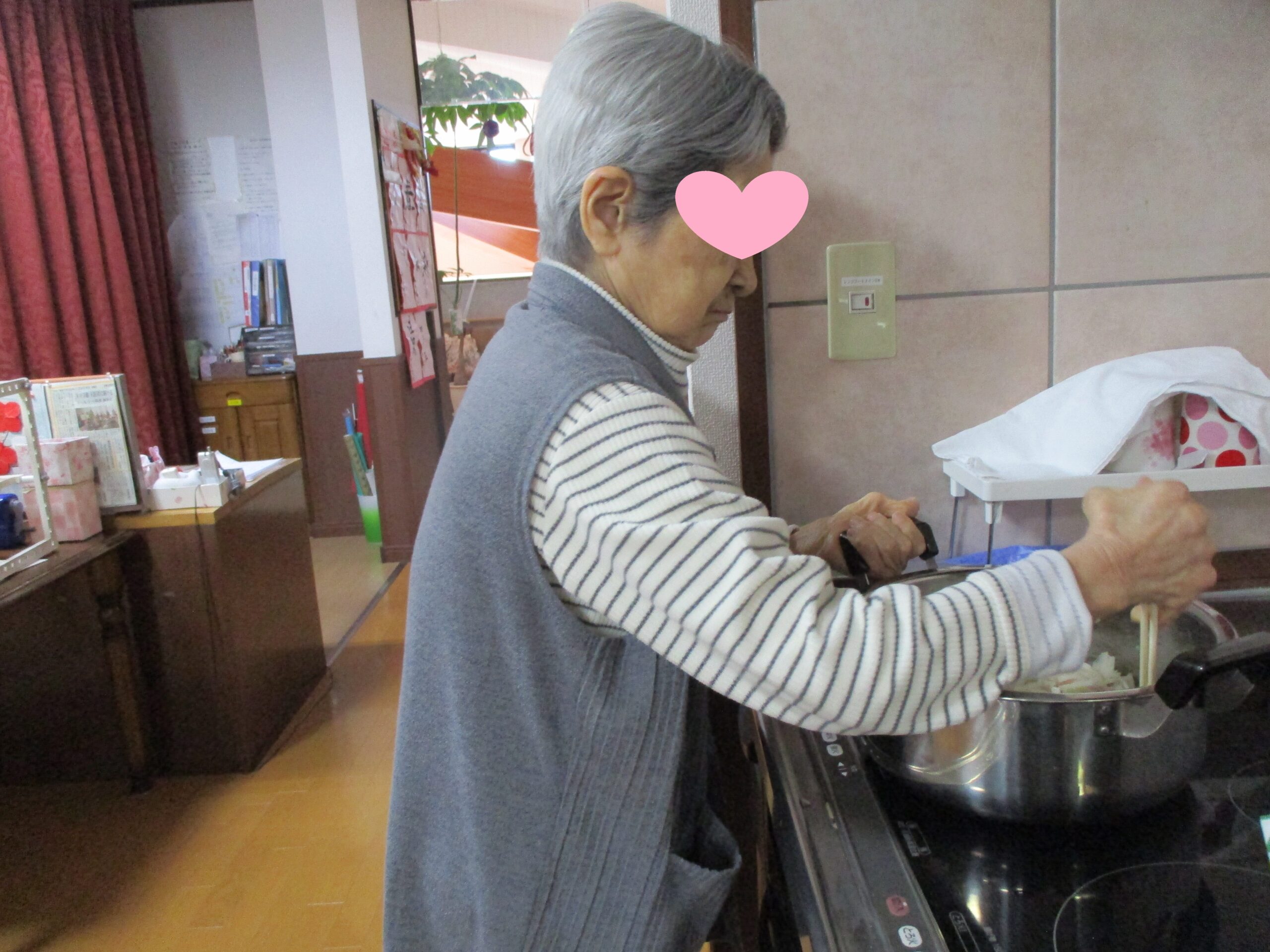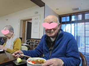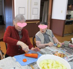 月に一度、ユニット単位で入居者様とスタッフが一緒に料理をする“ごちそうさまクッキング!。この日はカレーライスをクッキングしました!