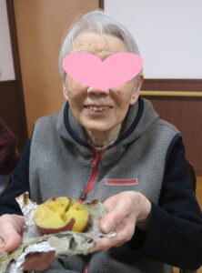 焼きたてのお芋をおやつとして召し上がり、皆さん笑顔いっぱいのひとときとなりました😊